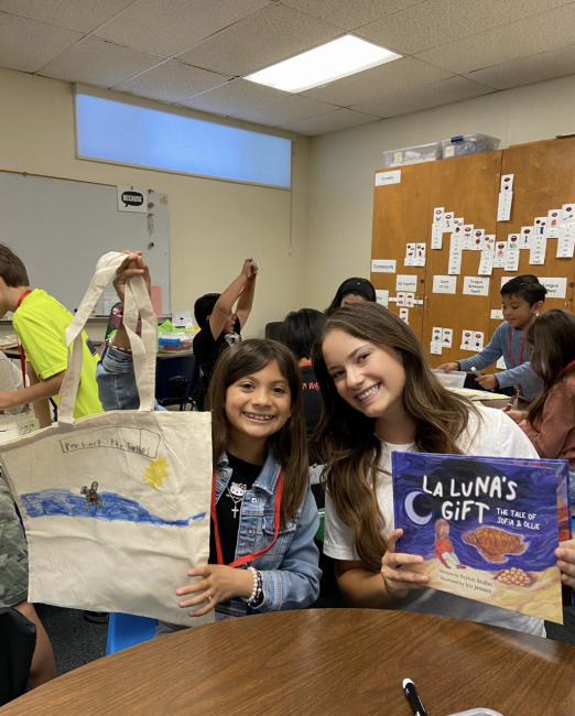 This past spring, Peyton and Iris celebrated the publishing of their illustrated book, and Peyton had the opportunity to read La Luna’s Gift aloud to a 2nd grade class at a Title I elementary school in Santa Barbara, as part of a Sprout Up lesson on the '4 R’s in Science.' After reading, the students created their own reusable tote bags. Many of them decorated their bags with drawings of sea turtles and slogans like “Save the Turtles!” Peyton says that while she was nervous to share her book with students, “the response was unforgettable—one student even said he rated it one million out of ten!” This journey began as a way to give back to the organization that had given Peyton so much. However, she never imagined that a year later, she’d be publishing her own children’s book, collaborating with professors and artists, and sharing it with young readers in her own community.